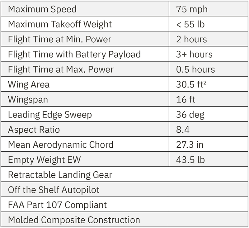 The XRAE-1 Foundation airframe was engineered for efficient fabrication, structural integrity, and stable flight dynamics. This configuration balances simplicity and performance making it an ideal platform for demonstrating rapid UAV development.